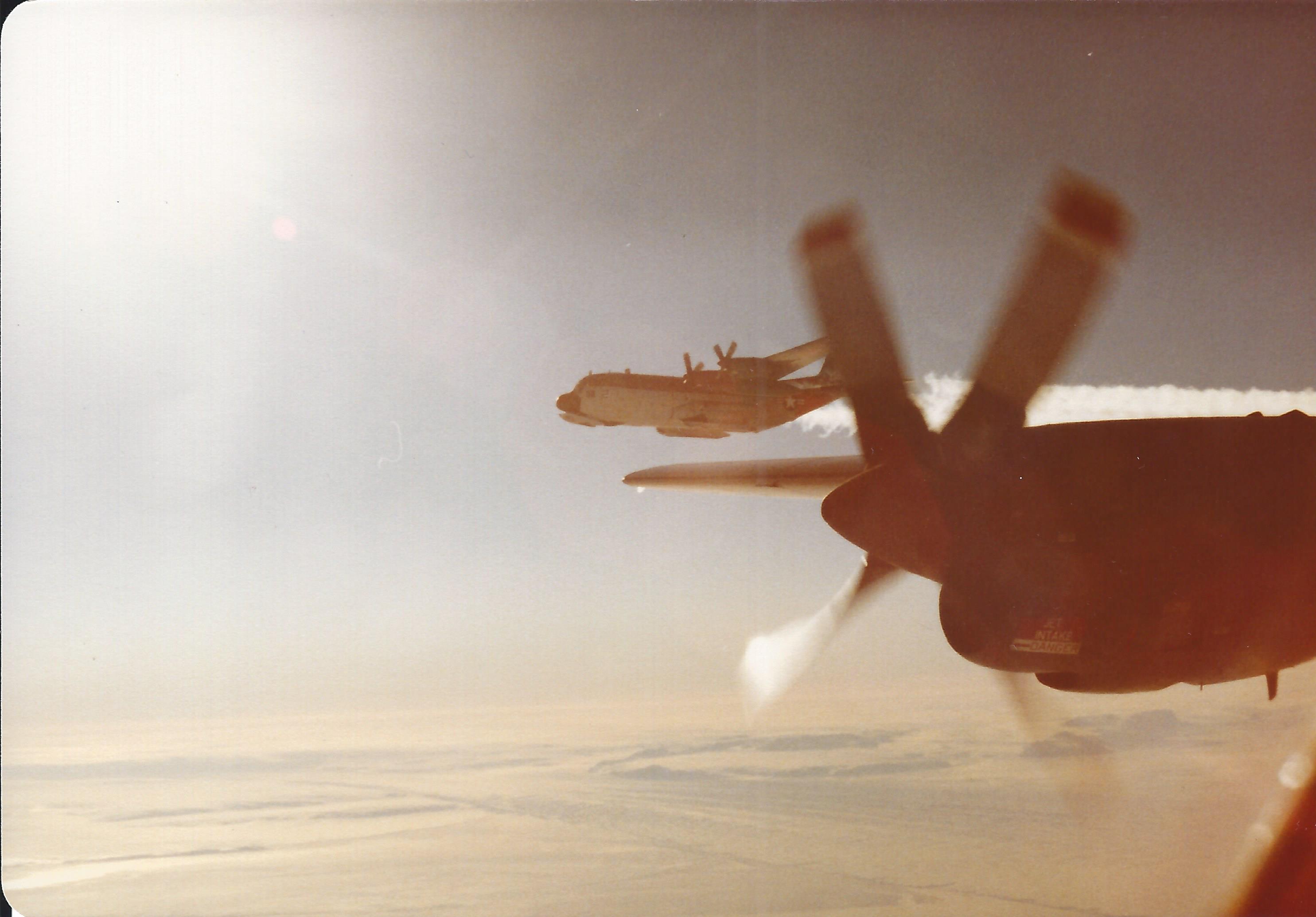 A pair of VXE-6 LC-130 aircraft enroute from Christchurch, NZ to McMurdo Station, Antarctica in November, 1981.